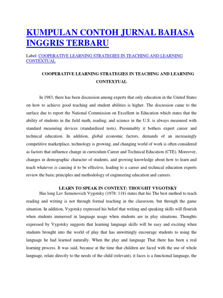 Kumpulan Contoh Jurnal Bahasa Inggris Terbaru Teachers Learning